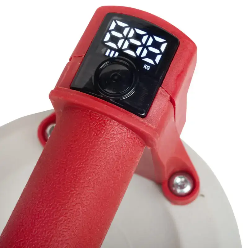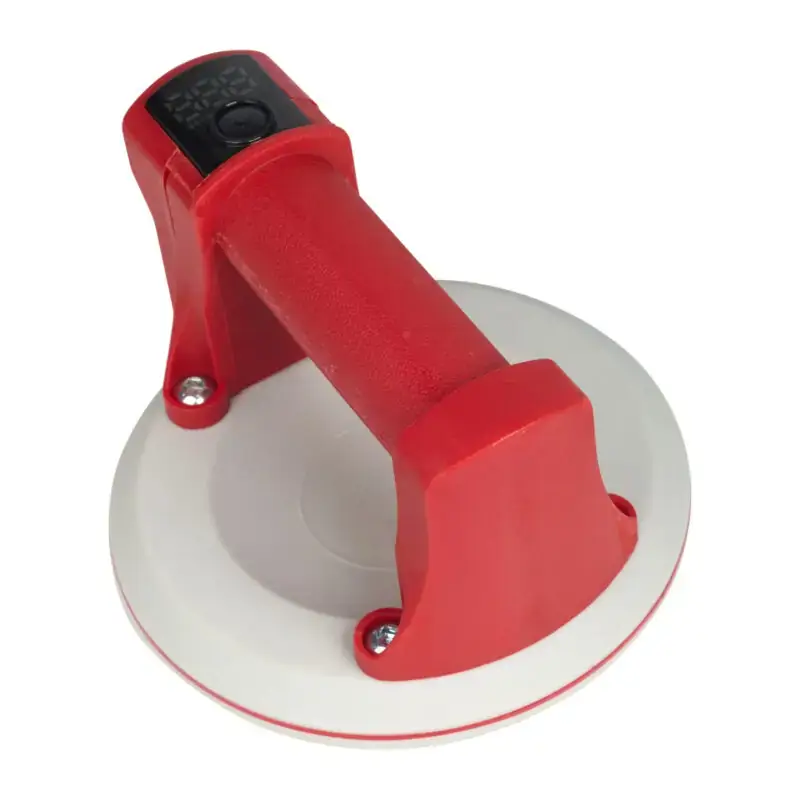 Присоска оснащена високопродуктивним вакуумним насосом, який здатен утримувати вантажі вагою до 100 кг на гладкій поверхні з правильно розміщеним центром ваги. Це дозволяє безпечно працювати з великими та важкими матеріалами.