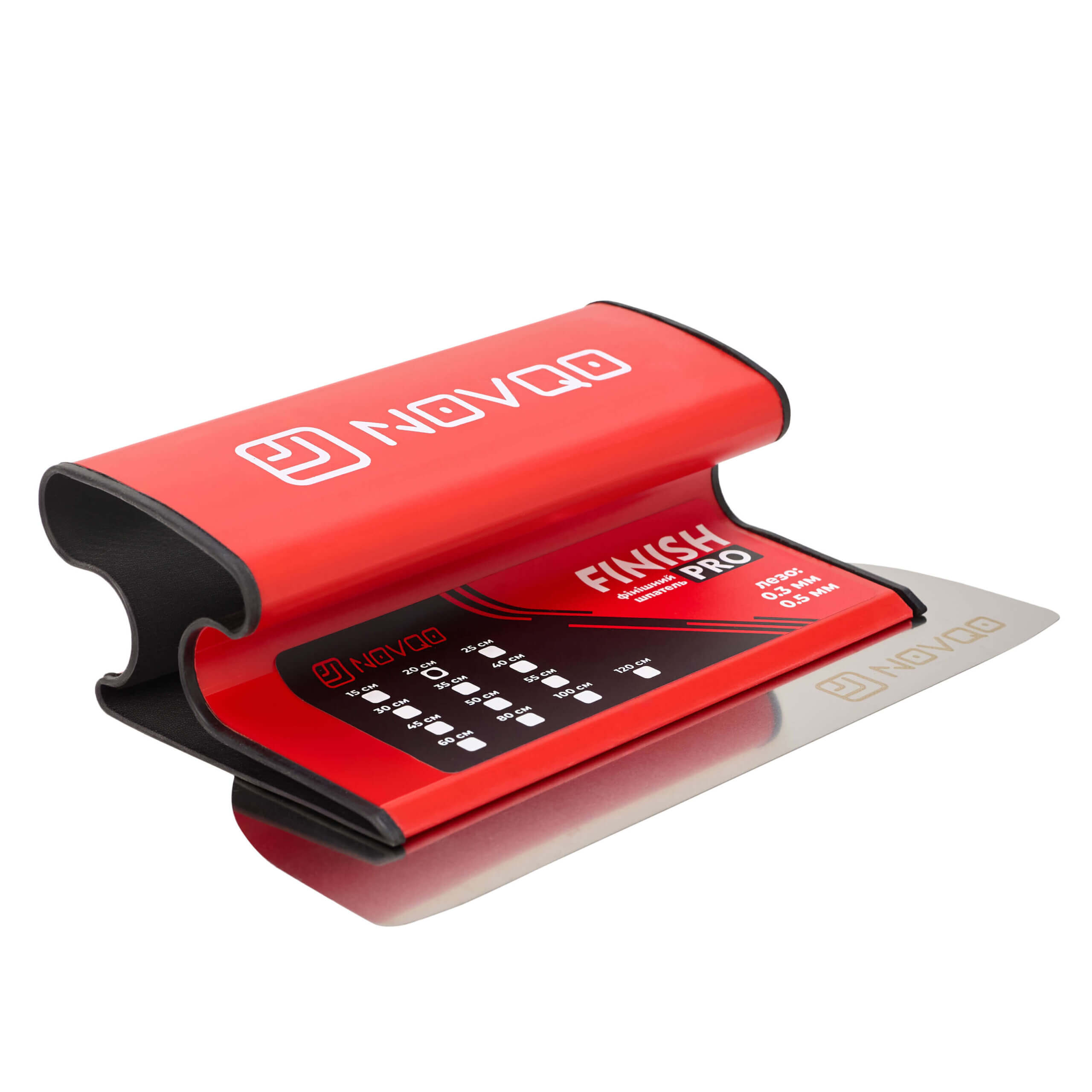 Шпатель NOVQO 300 мм с лезвием 0,3 мм подходит для финишного шпаклевания, деликатного выравнивания, распределения тонкого слоя смеси и подготовки поверхностей к дальнейшей отделке.